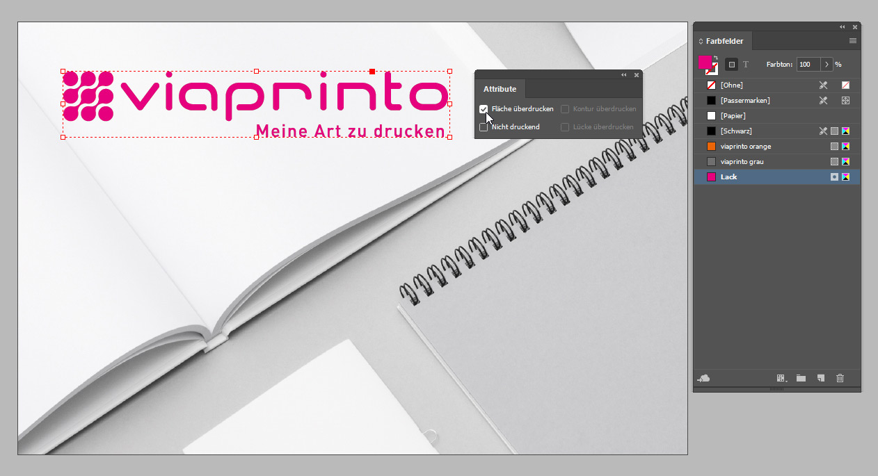 Bei ausgewählter Lackform setzen Sie im Anschluss den Haken bei "Fläche überdrucken".